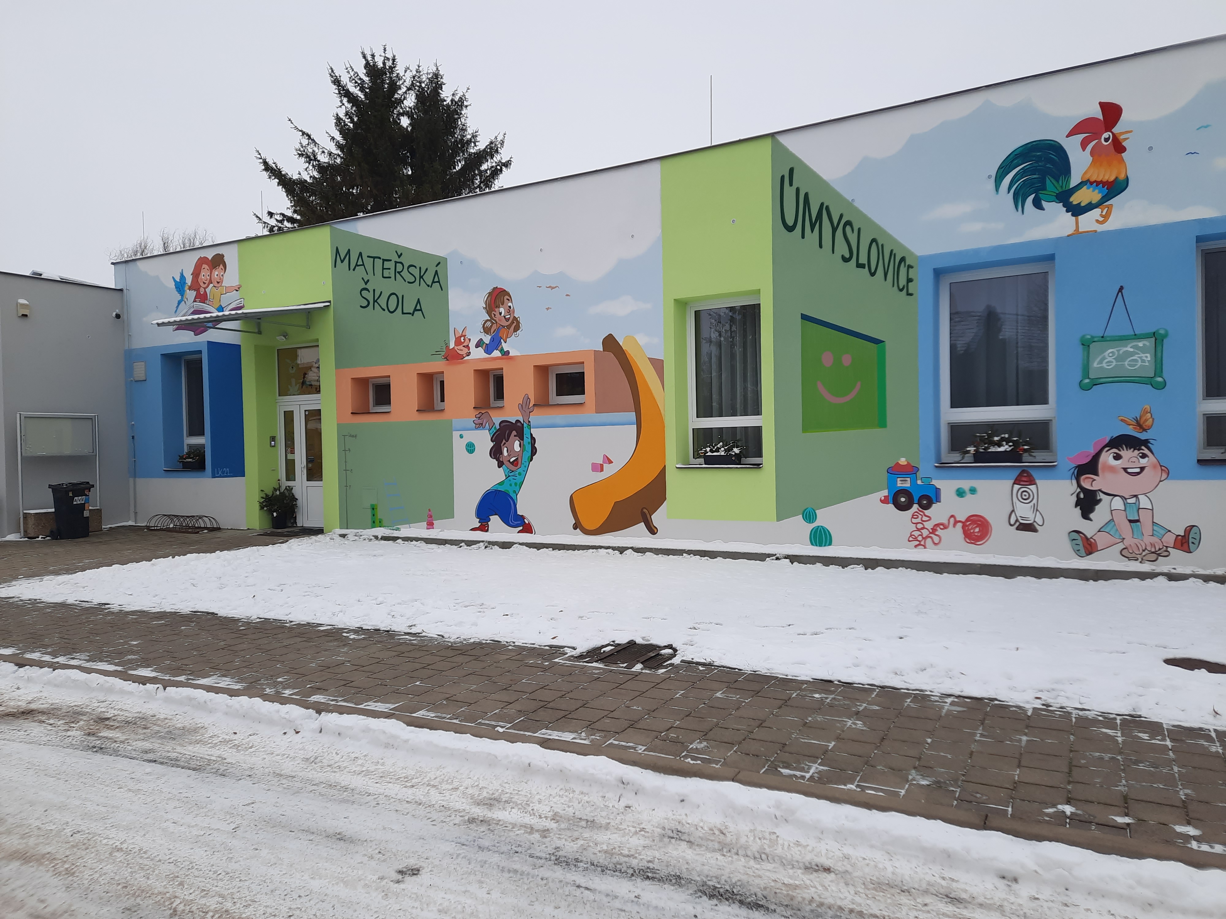 byla postavena v roce 1977. Jejím zřizovatelem je obec Úmyslovice. Nachází se zde jedna heterogenní třída. Ke sportovnímu vyžití máme k dispozici rozlehlou zahradu, která je vybavena herními prvky a domečkem s přístřeškem. Snažíme se, aby se tu děti cítily bezpečně, spokojeně a šťastně. Potřeby dítěte, jejich návyky a další důležité věci konzultujeme s rodiči a vždy se snažíme najít společnou řeč, aby pobyt dítěte v MŠ byl v začátcích co nejméně stresující. Přejeme si, aby vzájemný vztah s rodiči a pedagogy i ostatními zaměstnanci byl založen na vzájemném respektu, důvěře a chuti spolupracovat a spolupodílet se.